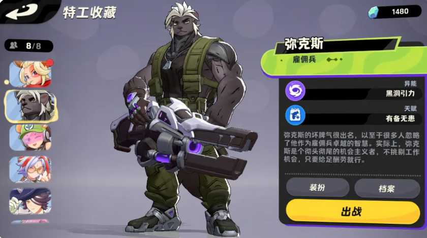 弥克斯是当前版本出场率颇高的特工之一。在《月相计划》中,若玩家希望寻找一位操作门槛低、涂色阶段表现稳定且易于掌握的角色,弥克斯无疑是值得重点考虑的雇佣兵人选。