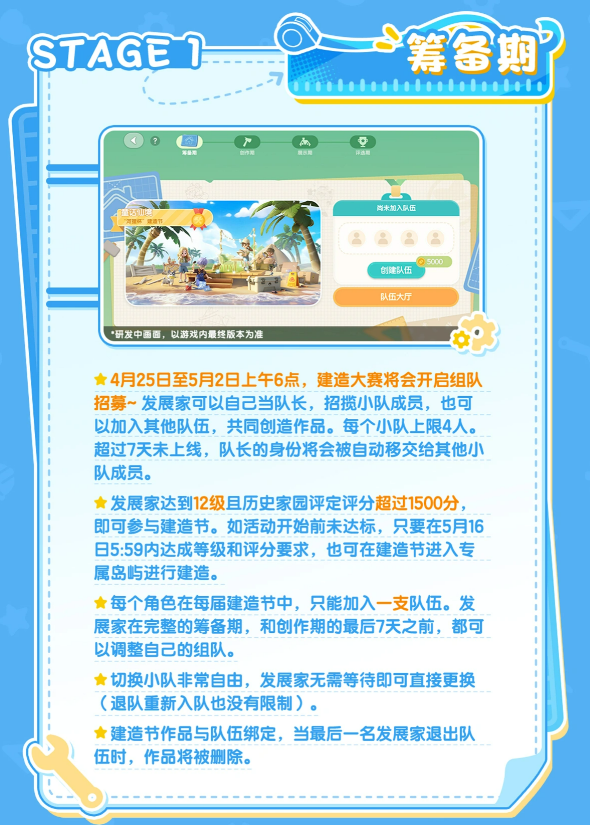 活动采用分阶段进行模式,整体周期覆盖4月下旬至6月下旬,横跨两个多月。对于喜爱家园设计与协作搭建的玩家而言,这是一次难得的深度创作机会。建议提前联络志同道合的伙伴,组建高效团队,携手投入创作。