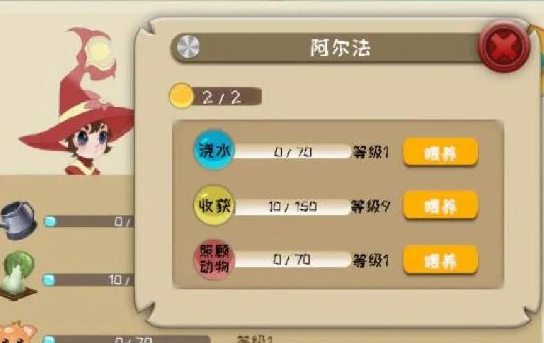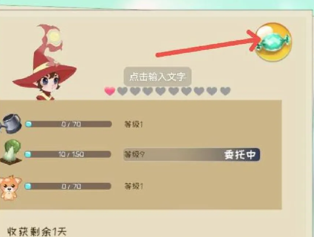 精灵功能入口位于游戏主界面右上角——右侧竖列第三位,图标为"笔记本+羽毛笔"。点击后进入精灵管理面板,再选择左侧第二个戴帽头像,即可进入完整操作界面。在此界面中,玩家可发布委托、撤回任务、升级技能。技能升级需消耗"糖果",每日登录赠送2颗,优先用于"收获""照顾动物""浇水"三项基础能力。其中,"收获"技能对整体产出影响最大,建议优先投入资源提升等级。
