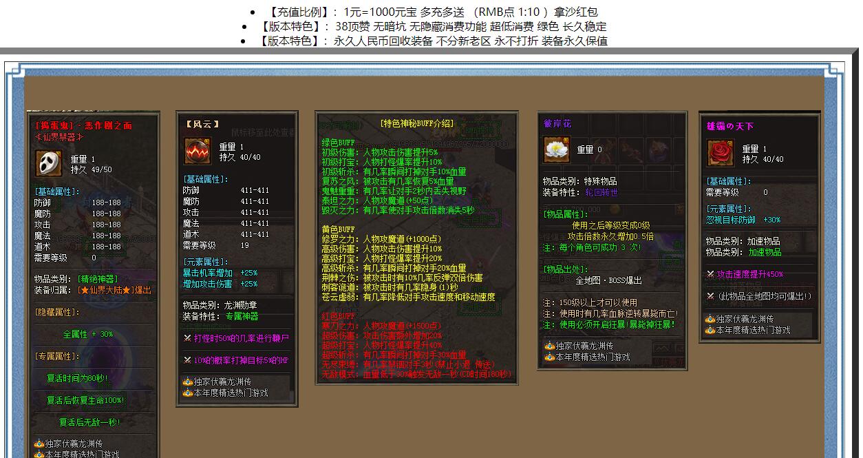 gom引擎伏羲龙渊神器激情复古单职业传奇服务端 欢喜游 发布时间 2025-10-02 22:09 下载地址 #gom引擎 【充值比例】:1元=1000元宝 多充多送 (RMB点 1:10 )拿沙红包【版本特色】:38顶赞 无暗坑 无隐藏消费功能 超低消费 绿色 长久稳定【版本特色】:永久人民币回收装备 不分新老区 永不打折 装备永久保值