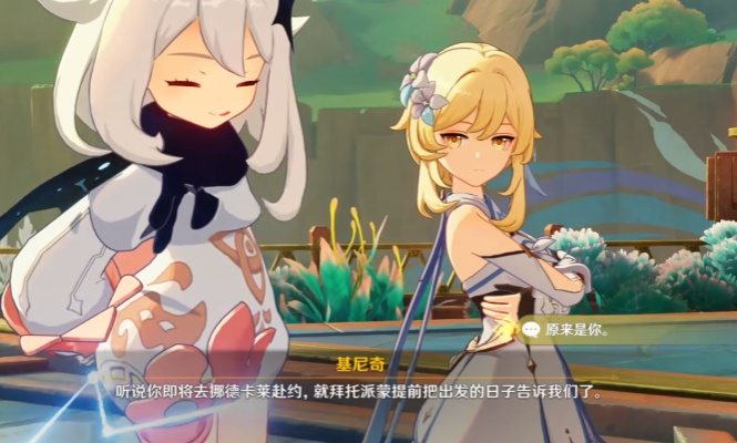 依循爱诺指引,旅行者在那夏镇广场遇到了霜月之子的咏月使菈乌玛。察觉到旅行者渴望寻回飞船,她提议一项约定:在两个月后的祈月之夜,借助月髓之力助其追溯过往记忆。作为交换,旅行者需在此期间协助教团监视愚人众的动态。随着日期临近,菈乌玛信守承诺,带领旅行者来到教团祭坛启动仪式。在流转的月光映照下,一段沉睡的记忆被唤醒——画面中清晰地显现出当年飞船迫降的确切位置,正是位于那夏镇外围的星沙滩。