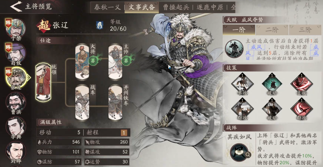 作为副将,臧霸的主要功能是增强主将的输出能力,特别契合骑兵类主将。与夏侯惇配合时,可大幅提升其暴击概率,强化属性克制收益;若与吕玲绮联手,则能拓宽其【封技】技能的覆盖范围,提升控制覆盖面,从而在战斗中占据战场主动。
