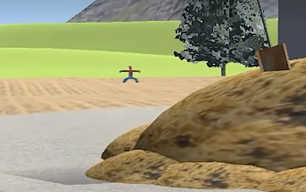 就在主角试图寻找线索时,远处田地中出现一个模糊人影。靠近查看时,此人突然发动攻击,紧接着一段诡异童谣响起,主角随即失去意识。醒来后,发现自己被囚禁在农场主屋内,门窗紧闭,唯一的逃生路径是通过二楼窗户离开。