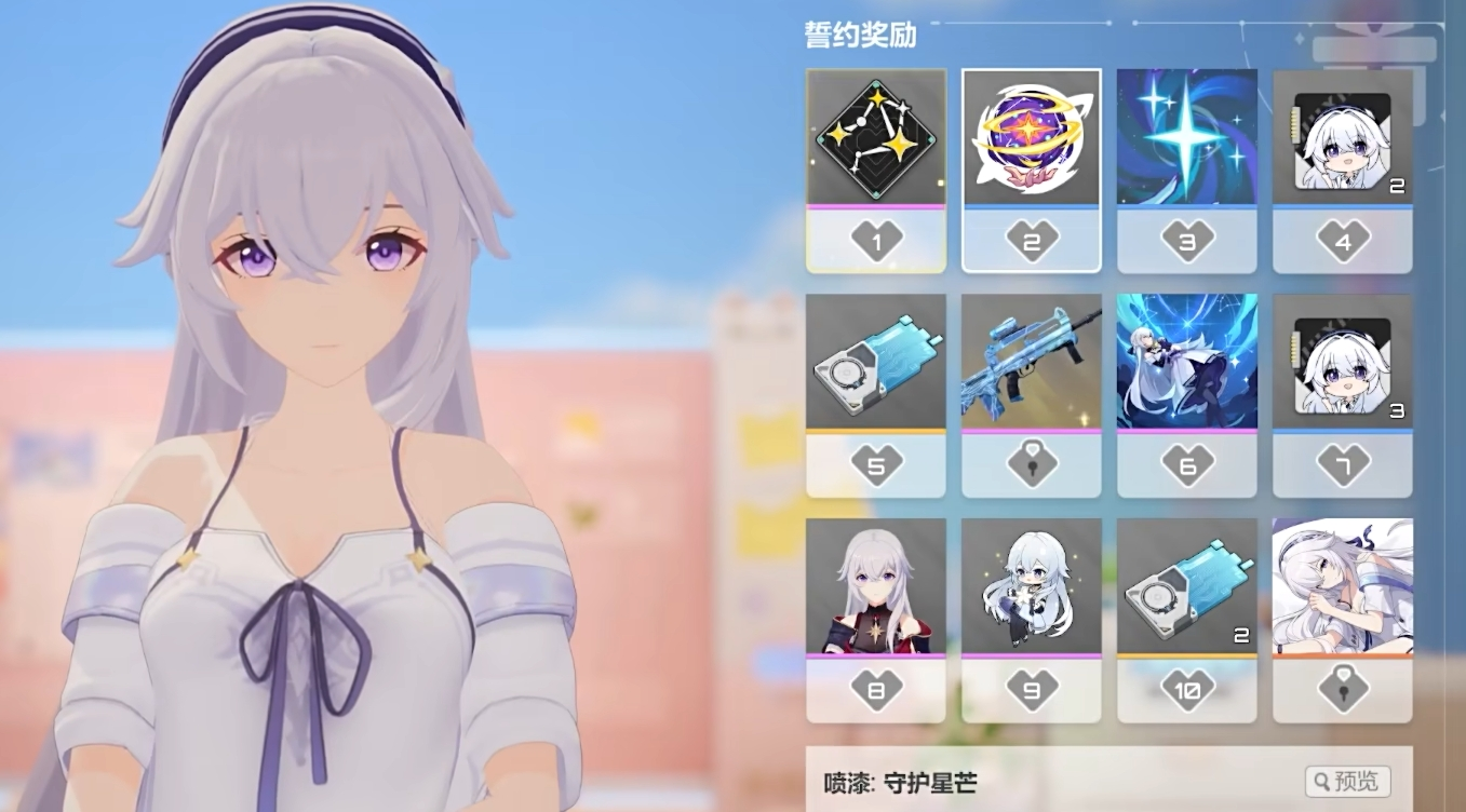 誓约等级共划分为十个阶段,依次为:1级起源之初、2级引力作用、3级思维交错、4级波长和谐、5级端点闭合、6级心音共振、7级意念同频、8级锚点链接、9级维度重叠、10级弦鸣誓约。每个阶段均关联独特的剧情节点与奖励内容,玩家需持续投入资源以深化关系发展。