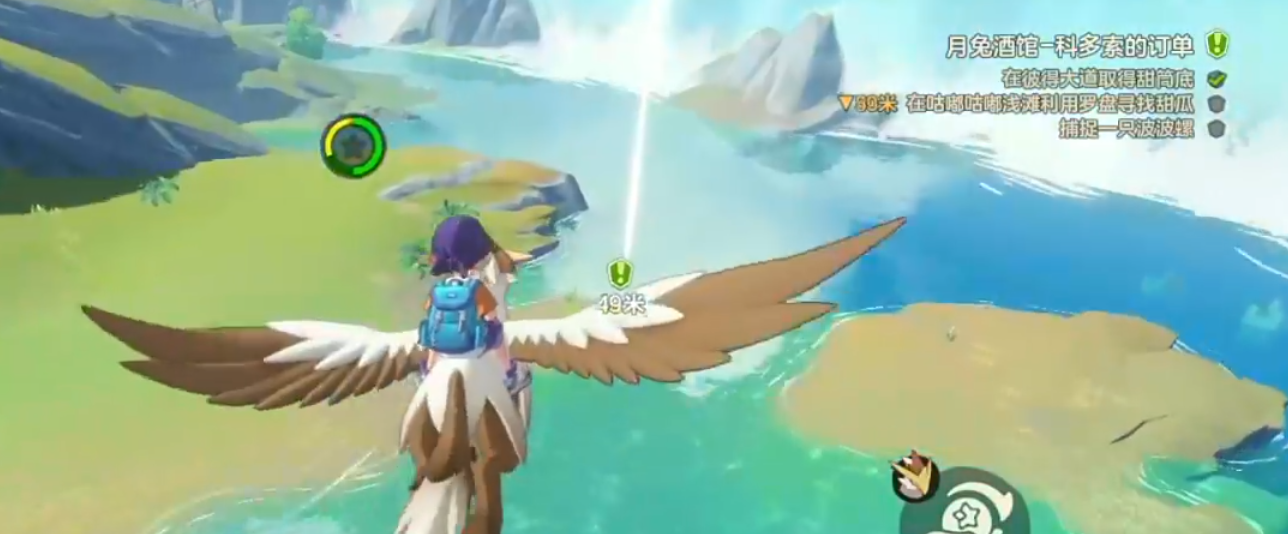 根据提示向北飞行约70米,即可发现一颗成熟的甜瓜,采集后任务进度将更新。紧接着需要捕捉一只波波螺以备后续烹饪。可通过地图传送至向日葵海岸,抵达露天对战区后,继续向附近的草丛前进,通常能在该区域发现波波螺的身影。这类精灵在沿海地带较为常见,遇到后即可立即发起捕捉。