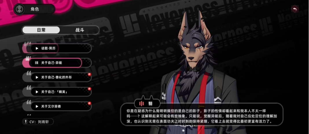 定位为主力近战输出的翳,拥有高大狼人形象,精通贴身连击。其最显著的特点在于移动方式——可化为黑影形态在地图中穿梭,此状态下免疫所有伤害且不与NPC产生碰撞,大幅提升探索效率。普攻由多段拳脚组合构成,节奏紧凑,末段能操控敌人并触发影子协同攻击。小技能具备高额单体伤害,适合清理精英目标。大招释放时聚集周围阴影力量,自身融入黑暗并释放强力冲击波,清场效果出众,是终结战斗的关键技能。