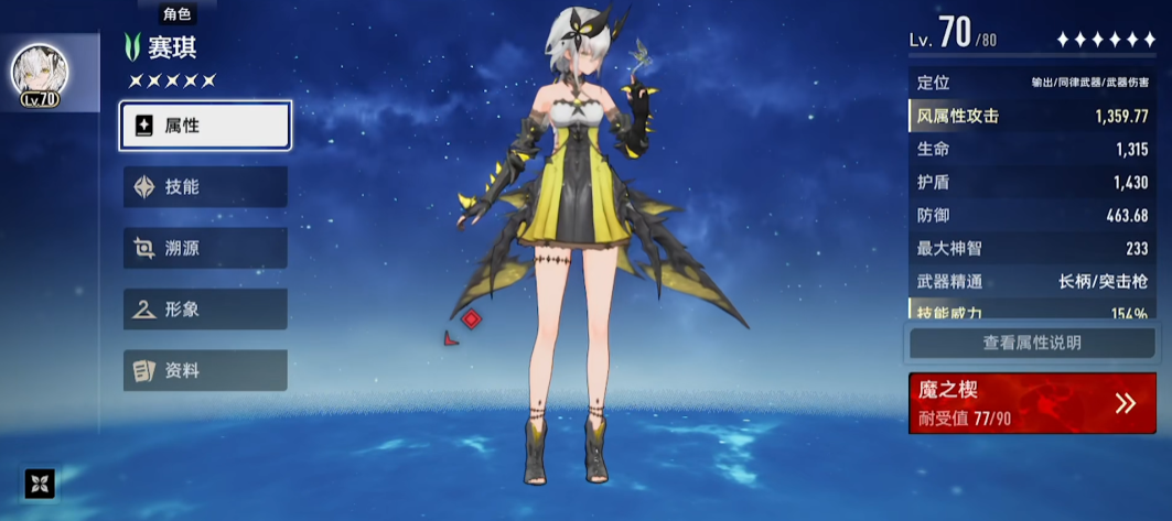 作为风属性输出角色,赛琪拥有制造幻象的能力,可对敌人施加减速效果并造成不俗伤害。通过叠加逐光印记,触发暴击时能激活额外伤害机制。若搭配护盾类角色,同时保证队伍具备减伤手段,便能让她在战场上持续稳定输出,是值得培养的核心输出角色。