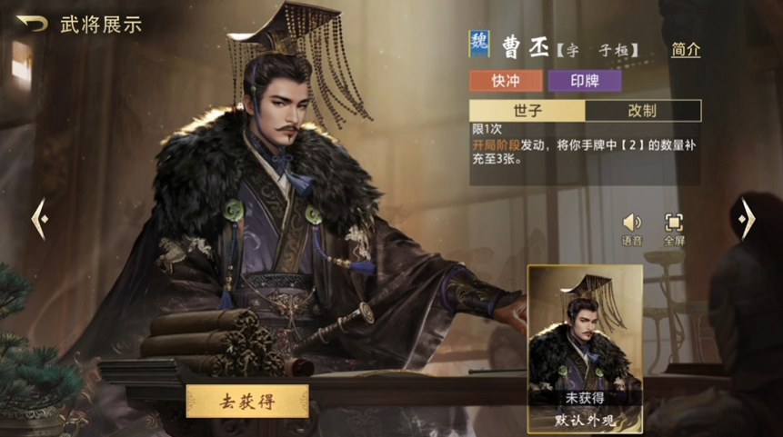 曹丕的“世子”技能在游戏初始阶段激活,可将其手牌中的“2”补足至3张,直接构成一手炸弹组合,抢占先机。