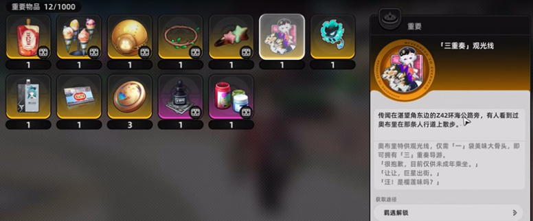 想要获得奥布里,第一步是触发专属支线任务。玩家需前往天桥区域,靠近后便会自动激活“三狗的羁绊”任务线。任务流程设计亲民,系统会提供清晰指引,无需复杂解谜或反复探索。只需按照提示完成一系列简单互动即可推进任务进度。完成后进入游戏菜单界面,便可查看奥布里的羁绊详情。但此时尚未真正解锁,必须将羁绊等级提升至5级,达到后即可领取奖励——三重奏观光线。