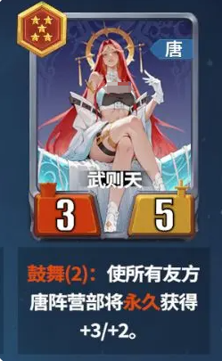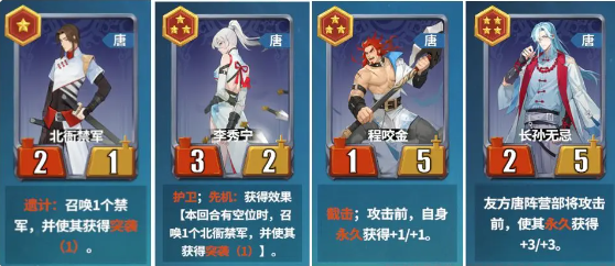 组构唐阵营阵容时,多张关键卡牌必不可少。首推武则天,其鼓舞效果能永久为全队增加两点阵营值,叠加层数越多强度越高,是提升团队整体战力的核心。其次是李白,攻击前可召唤带突袭的单位并造成可观伤害,成型后甚至能单挑相柳,建议搭配不屈特性卡牌以增强生存。此外,杨玉环作为禁军主要召唤源,能稳定提供高频攻击;上官婉儿可通过随机获取唐阵营部将,加速阵容成型,也应优先加入。
